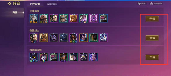 3、选择好版本之后,点击阵容右侧的【详情】,就可以进入阵容的详细界面;