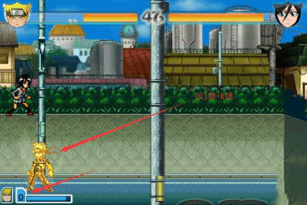 3、忍者角色和死神角色释放替身术和爆气术的方式相同,必须在自身收到玩家攻击的时候,按下“O”键,即可释放替身术或者爆气术。