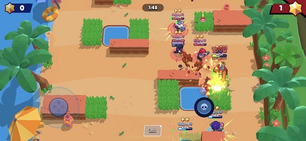 作为一款MOBA游戏,《荒野乱斗》还是很贴合MOBA的特点的。在英雄设计上,每个英雄的枪械大不相同,有散弹、“霰弹”雪莉、“双枪”柯尔特、“火箭筒”布洛克等等数十个英雄,或肉,或辅助,定位各不相同。比如,“小脚印”妮塔就带着一只棕熊,能够追踪敌人,十分的有趣。英雄的获得,通过金币抽取。每次过关玩家可以获取金币用来抽取新的角色。