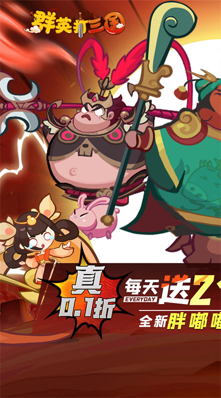群英打三国是一款三国题材的Q版卡牌策略类手机游戏,玩家将来到以群雄纷争的三国年代为蓝本打造的Q版世界,和憨态可掬的武将们一同征战四方,在南征北战中一统中原大地,书写自己的恢弘历史。群英打三国以放置类卡牌战斗玩法为核心,玩家可收集汉末三国年间众多文臣武将,随心构筑出最符合自己战斗风格的流派,在战斗中调兵遣将,横扫千军,享受爽快战斗体验。喜欢群英打三国的小伙伴们赶紧下载游戏体验吧!