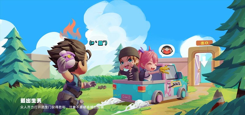 逃跑吧少年官方服在备受好评的非对称竞技玩法的基础上添加了诸多休闲内容,不仅有各类脑洞大开的奇特道具,还有各种互动性十足的动作表情,让玩家可以在游戏中秀出自己的操作或者才艺,在快节奏的对战中享受轻松愉快的体验。