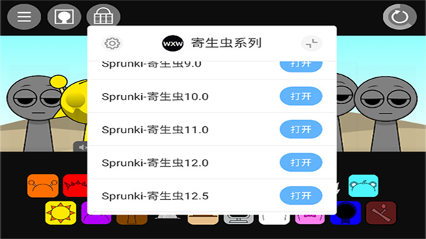 1、打开节奏盒子Sprunki寄生虫模组游戏,点击屏幕上的【WXW】寄生虫模组点击打开。