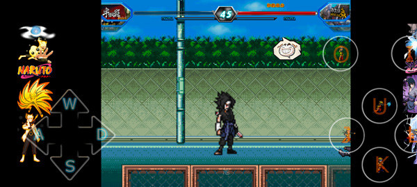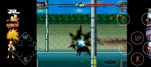 6、等待一会加载即可正式进入游戏,游戏内左边为移动键,右边为攻击键、技能键、闪避键、跳跃键、以及释放忍术卷轴和通灵兽;