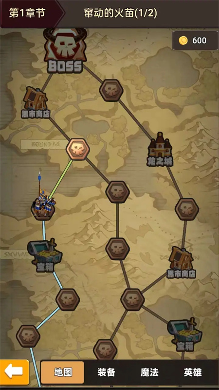 4、选择完毕后会让你选择前进路线,点击对应的地点就可以前进,不同的地点会有不一样的效果和随机事件。