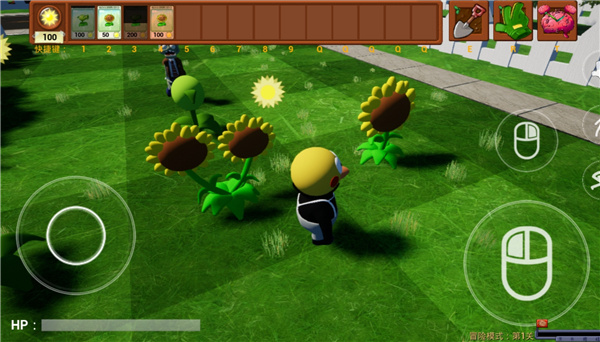 3、玩家需要控制小人在草地上收集阳光。