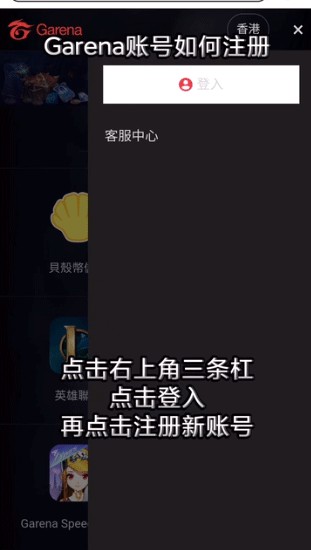 -点击右上角三条杠,点击登入,再点击注册新账号