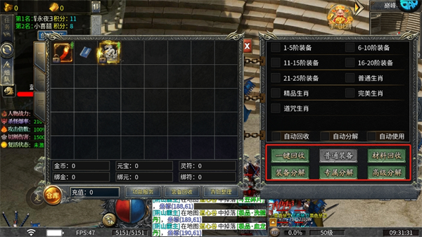 6、不需要的装备可以一键回收高级分解。