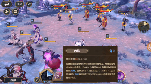 祝融的普通攻击,也就是「凶焰」。这个技能很特别,是三段攻击,伤害很低,但每次伤害都有几率给敌方施加「灼烧」状态,是「灼烧」的第二个来源。
