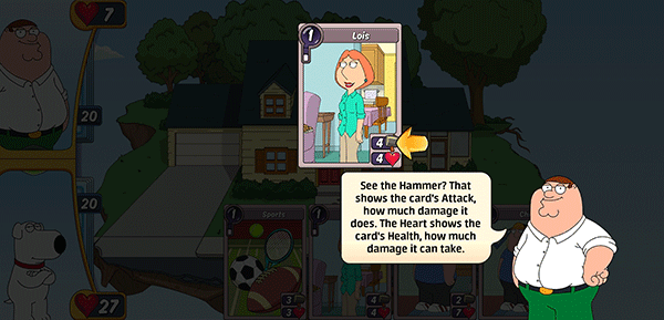 4、看到卡牌上的锤子了吗?它显示了卡牌的攻击力和造成的伤害,心形图标显示卡片的生命值,多少可能造成的伤害