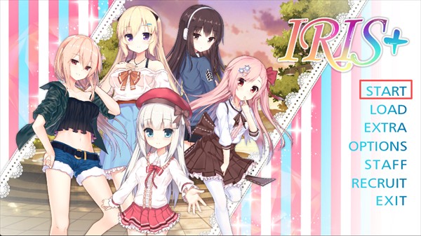 可选择【START】开始新游戏、【LOAD】读取存档、【EXTRA】额外内容、【OPTIONS】选项设置、【STAFF】制作人员、【RECRUIT】招募、【EXIT】退出游戏,开启恋爱冒险之旅。