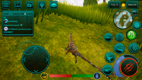 1、成长系统! 恐龙不会立即显得很大,需要照顾。 你需要培养他。 为此,你需要生存、寻找食物和饮料,并避免来自其他肉食恐龙(例如巨龙、重爪龙或暴龙)的潜在威胁。
