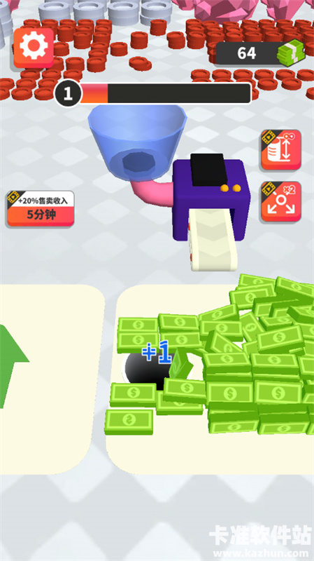 5、随后这个印钞机会输出相对应的钞票,这时你就可以上去把钞票吸入,右上方的钞票数量也会增多。