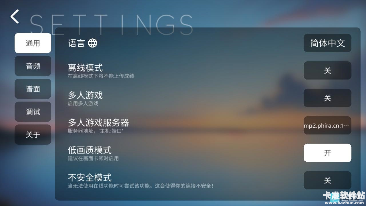 5、在【设置】界面可以完成详细的设置,语言、音符调节,还可以调节画质,更可进行多人游戏!