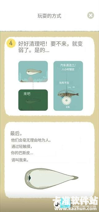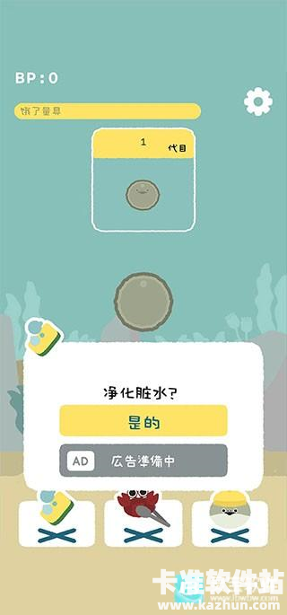 1、游戏一开始内,我们获得的是虚无鱼BasPi的鱼卵状态,这个时候只要净化脏水就好了,接下来就是耐心等待它孵化