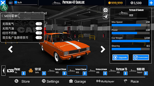 4、多种不同的赛车你可以去进行选择,每一个赛车有着不同的外观和性能;