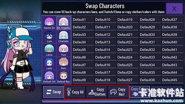2、在新界面底部,Copy开头的按钮,分别是复制全部、复制衣服和复制头发;