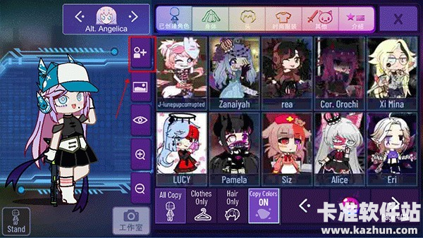 3、选择你要复制的部分后,在右侧“+”号按钮中,可以将复制的部分导入到其他人设上。