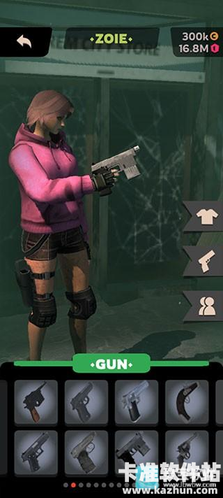 玩家点击首页store即可进入商店,可以切换人物以及衣服,也可以购买武器。