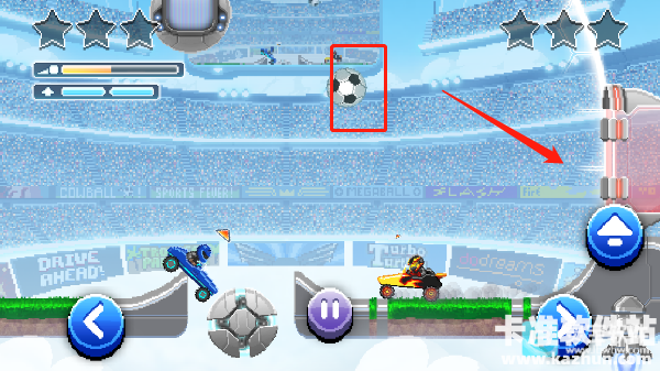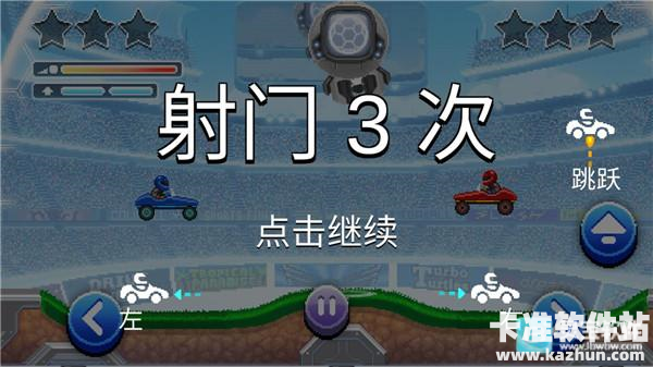 3、对局中采用六局三胜机制,我们需要控制赛车,将足球撞进对手的门框内,率先得分为三的一方获得胜利