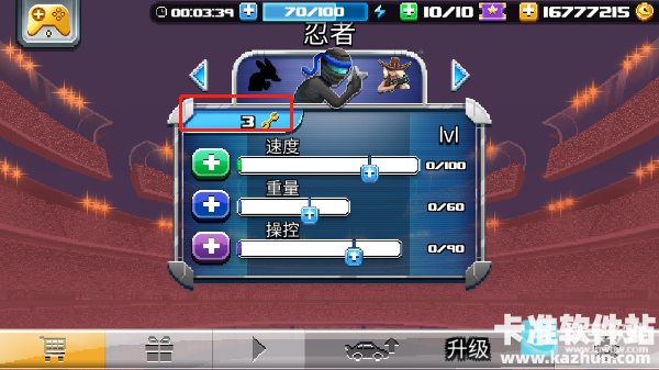 6、而升级点可在下图所示位置,提升角色速度、重量、操控等各项属性
