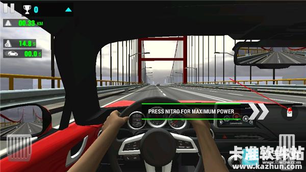 1、在本站下载安装并打开赛车限制游戏,进入游戏。右边按钮是油门,点击可以加速。