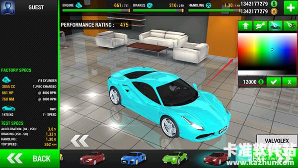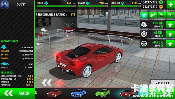 您可以通过改变齿轮比,底盘高度和车轮外倾角定制你的车。你可以升级你的引擎,刹车,以及处理有更好的表现。一些身体和边缘的颜色也可供您选择。