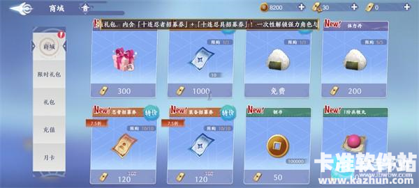 在商城购买忍者招募券、装备招募券等道具,获取强力角色和装备提升战力。