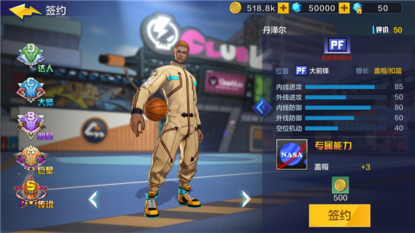 4、全新500分球员潮酷登场,嘻哈的装扮一如街篮文化的态度,此次球员将会拥有全新获取方式