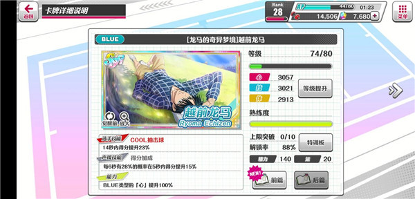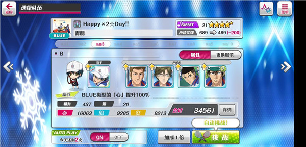 新网球王子游戏是一款根据动漫改编而来的音乐节奏类型游戏,其英文名也被称为RisingBea。在这款游戏之中你将会见到新网球王子之中的个各种不同精英网球队伍之中的队员,作为U-17的代表不断地培训,完成一系列的网球拍打。新网球王子游戏之中你可以见识到各种不同的球员在球场上挥洒的汗水,使用不同的技能来增加自己获取的分数,感受紧张刺激的网球对战之旅吧。