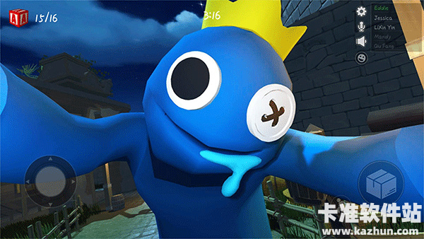 4、游戏左侧是操控移动,点击右侧的箱子就可以一键切换成箱子,不让怪物发现你。
