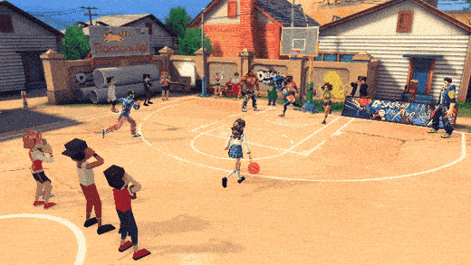 与好友一起征战街头篮球场