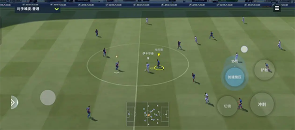 3、假动作:在盘带时,迅速向希望盘带的方向拨动摇杆,同时触碰到冲刺键,即可触发假动作。