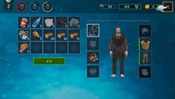 5、使用手头仅有的物资来制造工具,从而帮助自己能填饱肚子。