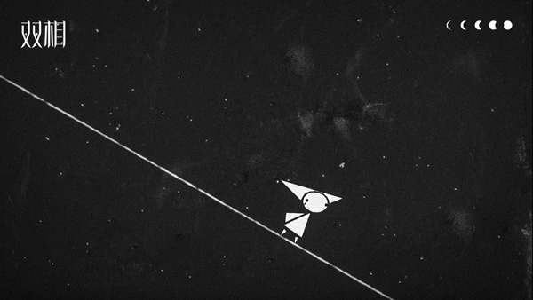 《双相》的主角人物“我”,同时也是玩家在游戏中需要操控的角色,形象主体由不同大小的三角形、圆形等简单的几何图形拼合而成,部分形象灵感来源于“小丑”,整体设计风格简约。然而简洁单薄的身形和看似毫无波澜的表情之下,却是内心的纠结与挣扎。将主角形象放大会发现,位于眼旁的小三角,其实是垂落的泪滴——正如大多时候,人们都看见了“小丑”夸张的笑容,却很少注意到“小丑”眼角的泪滴。