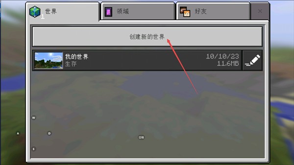 2、点击创建新的世界,