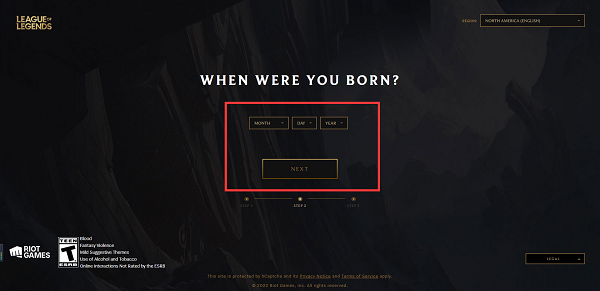 3、输入生日信息后点击“NEXT”(大于18岁),
