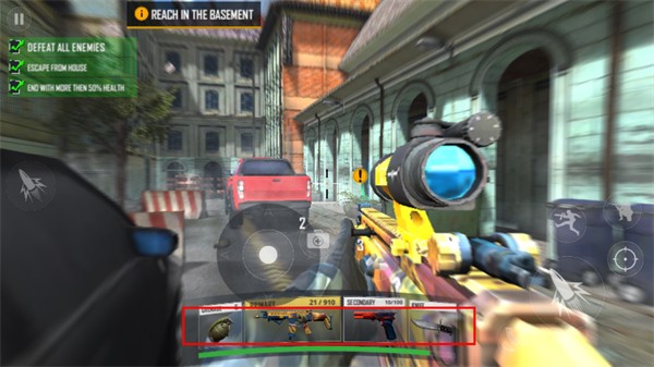 2、辅助道具的运用:有大量辅助道具,如8倍镜等,可以帮助你更准确地击败敌人,能逐渐提高战斗效果。