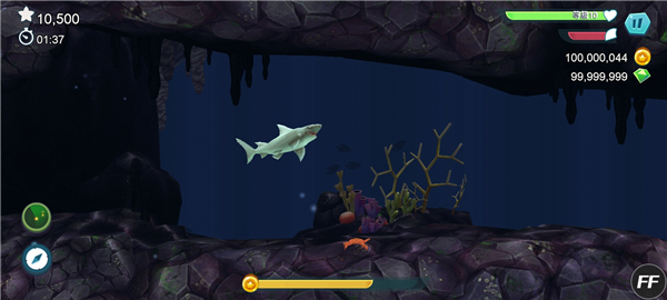 持续的使用加速会造成鲨鱼饥饿度增加,玩家要注意好两者之间的关系,不要轻易的加速,浪费鲨鱼体力。