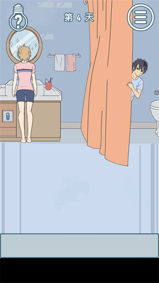 先点击水龙头放满水,然后点击开关使水沸腾镜子出现水蒸气,关闭开关,回到场景一点击闹钟叫醒女朋友,即可通关。