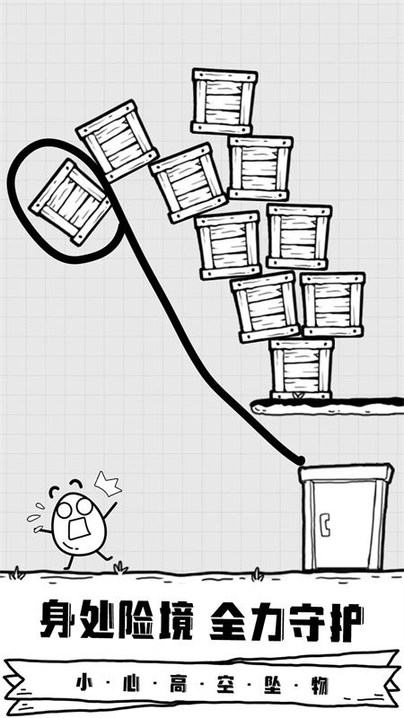 在茶叶蛋头上划线,一直到门上,让箱子不能砸倒茶叶蛋,然后走到里即可