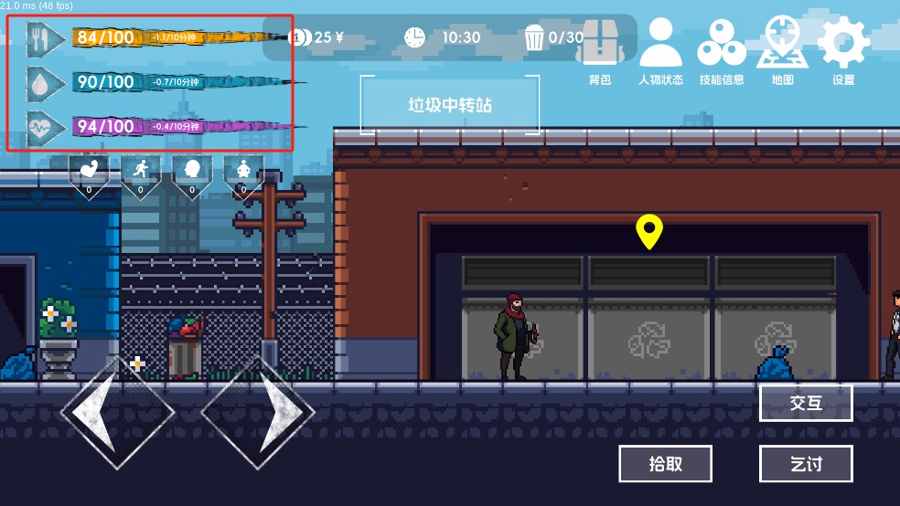 开局身无分文,在这里拾取各种的垃圾的方式,赚取金币,游戏的玩法非常的真实,玩家们体验流浪汉的一天,依靠生存技巧,在这座城市之中努力的存活下去。