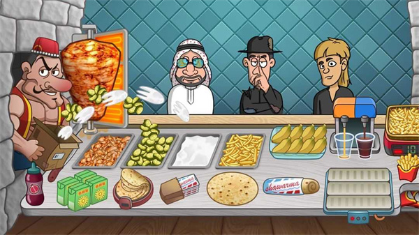 卷饼复刻真实流程,游戏的画质非常的诱人,在这里不断你的升级各种的装备,扩建自己的店面,应对各种顾客的需求,完美的交付每一单,获得丰厚的奖励来解锁更多的游戏食材,自由的制作沙威玛创造更多的美食。