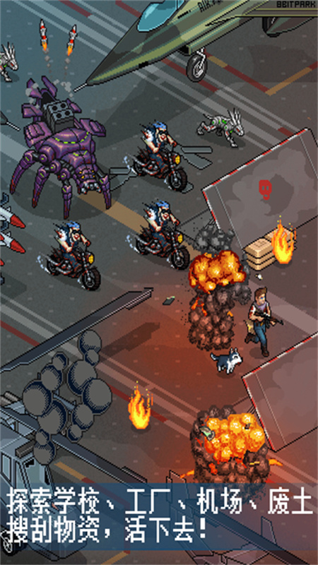 像素画风完美还原末日情节,游戏中大量的场景地图充满了探索感,各种的武器和装备自由的切换,建造自己的避难所,努力经营,保证人类最后的生存空间,制作各种的装备和武器,和丧尸们展开较量,成功击败获得胜利。