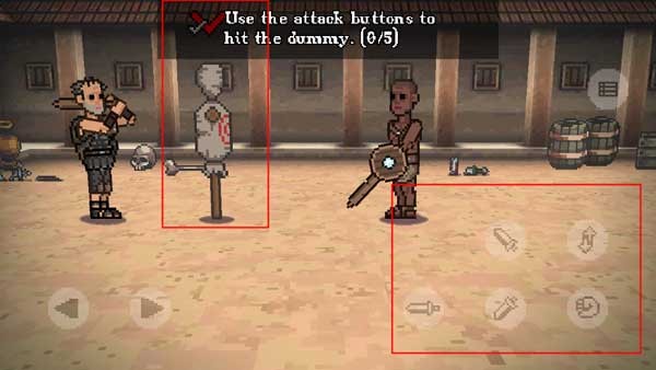 4、下面就是实际操作,用剑通过右边的按钮来攻击木头人,攻击完成后就结束新手教程了。