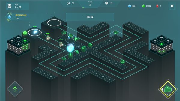 十字防守游戏设置了一个任务列表。你可以在游戏过程中完成它们,以获得更多的游戏资源。有时,它们会与炮台合并发生冲突,这需要你在资源收集和炮台力量之间找到平衡。