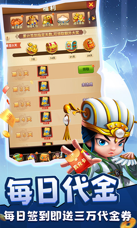 1、每日赠送三万代金券!!!
