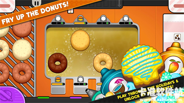 2、体验十分欢乐的游戏挑战,卡通风格的游戏画面,一起制作美味的甜甜圈吧。