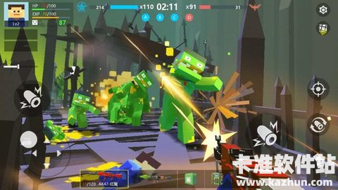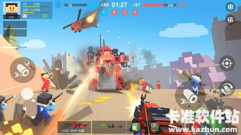 游戏采用低多边形美术风格,画面简洁明快,同时支持多人联机对战。玩家可以自由探索地图,利用地形和建筑优势制定战术,还能通过团队协作提升胜率。无论是单人冒险还是组队开黑,都能感受到紧张刺激的竞技乐趣。