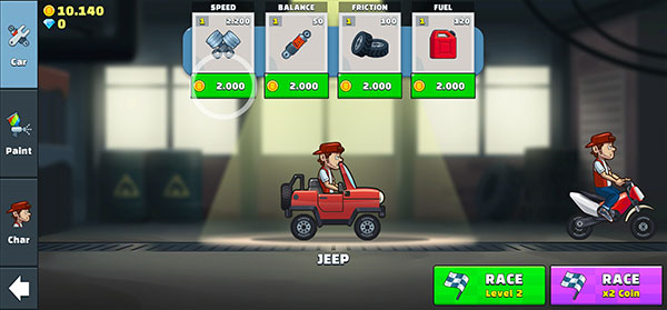 在开始之前你可以对你的越野车部件进行升级,以此获得强大的动力;