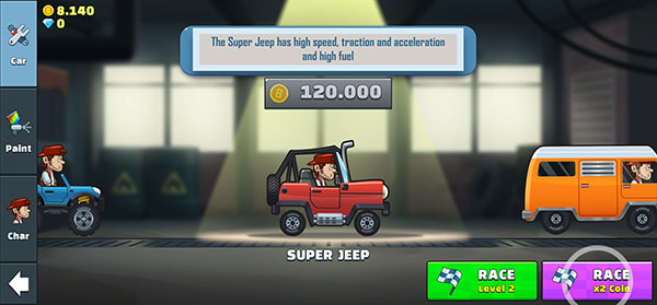 在前进的途中,会拥有大量的金币,你可以用金币购买更好的车辆;